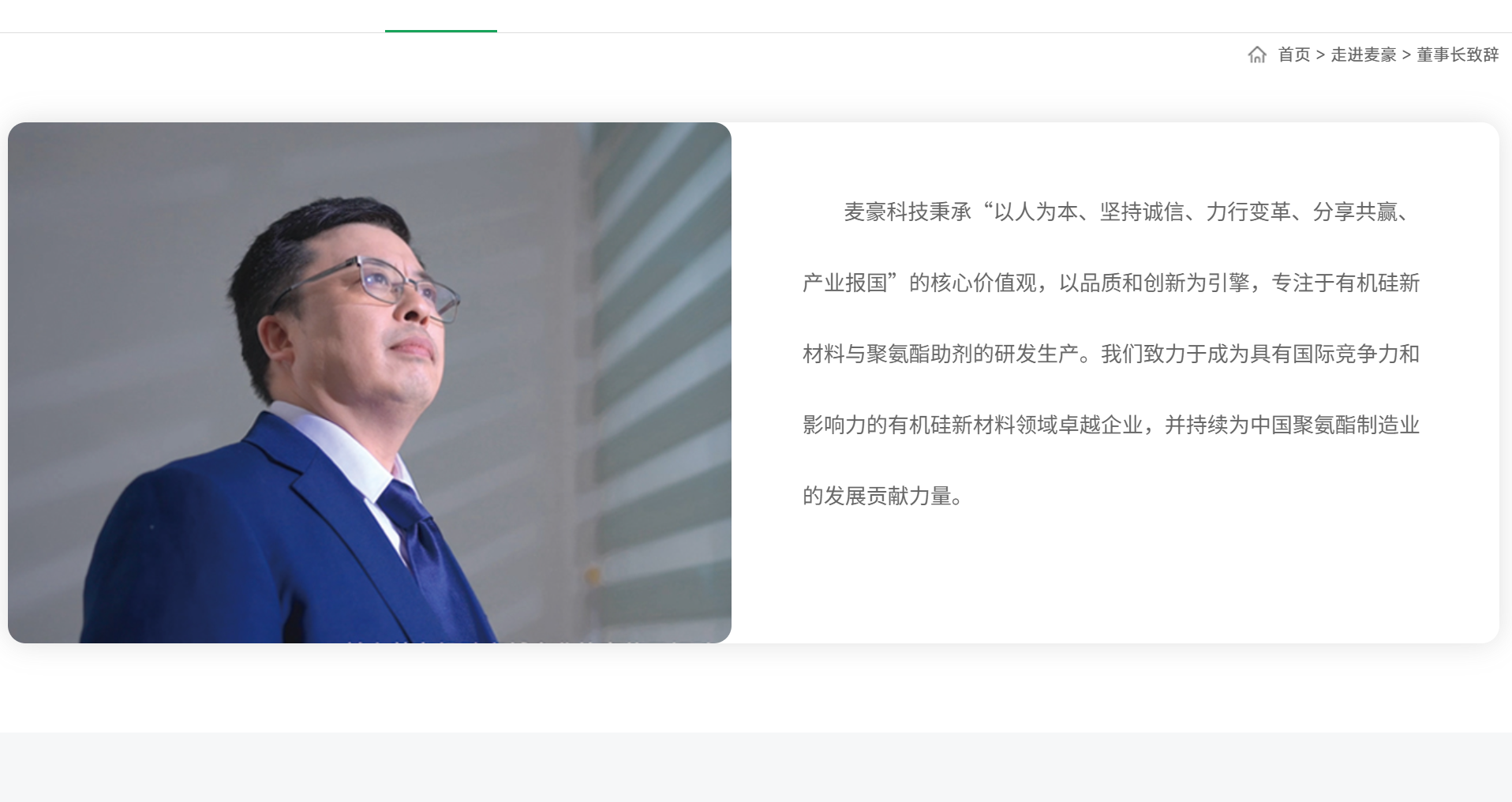 麥豪科技研究有機硅表面活性劑始于2011年,是一家由海歸人員、聚氨酯及有機硅行業專家創辦的專業研發、生產及銷售有機硅新型材料和特種催化劑的上海市高新技術企業及江西省高新技術企業。總部及研發中心位于上海金山,生產基地位于上海金山及江西永修,占地面積75000m2,公司通過了環評、安評、消防、ISO9001、ISO14001、ISO45001及歐盟REACH認證,擁有多項專利技術。